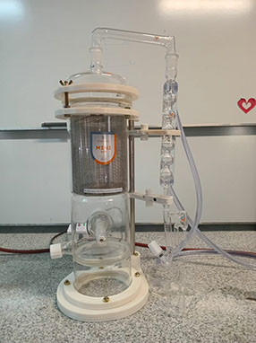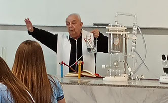 Durante una práctica el Padre bendijo al nuevo destilador - extractor de aceites esenciales y la lupa estereoscópica binocular recientemente adquiridos para llevar adelante nuevos proyectos en el área de Ciencias Exactas y Naturales.