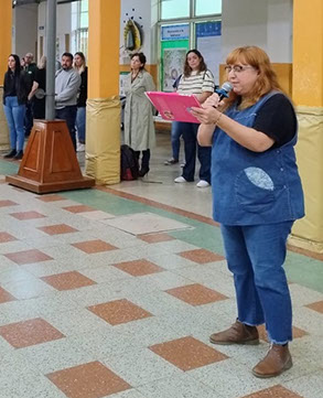 Como lo indica el Calendario Escolar, en el Nivel Primario se dio inicio a la Semana de la Lectura con una formación general y con las palabras del Director Julián Nicolao y la Bibliotecaria Angy Perrupato.