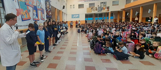El Ateneo Prof. Luis Lanzani fue escenario de este encuentro inolvidable, que reunió a toda nuestra Comunidad Educativa: estudiantes de todos los Niveles, docentes, personal no docente, familias, autoridades y representantes de escuelas vecinas. Los aplausos, las miradas emocionadas y las voces de nuestros niños gritando su nombre reflejaron el cariño y la admiración de todos.
