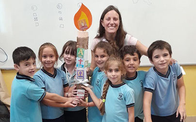 Nuestros alumnos de segundo año de la Escuela Primaria, acompañados por su catequista Rosa, se prepararon con entusiasmo para la celebración de la Pascua.