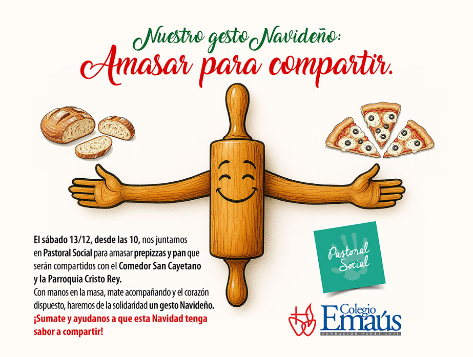 El sábado 14 de diciembre, el equipo de Pastoral Social vivenció una jornada profundamente solidaria, marcada por el amor al prójimo. Luego de entregar las Cajas Navideñas generosamente donadas por la comunidad de Emaús, el compromiso con los más vulnerables se hizo tangible en un hermoso gesto: el amasado de pan y pizzas.